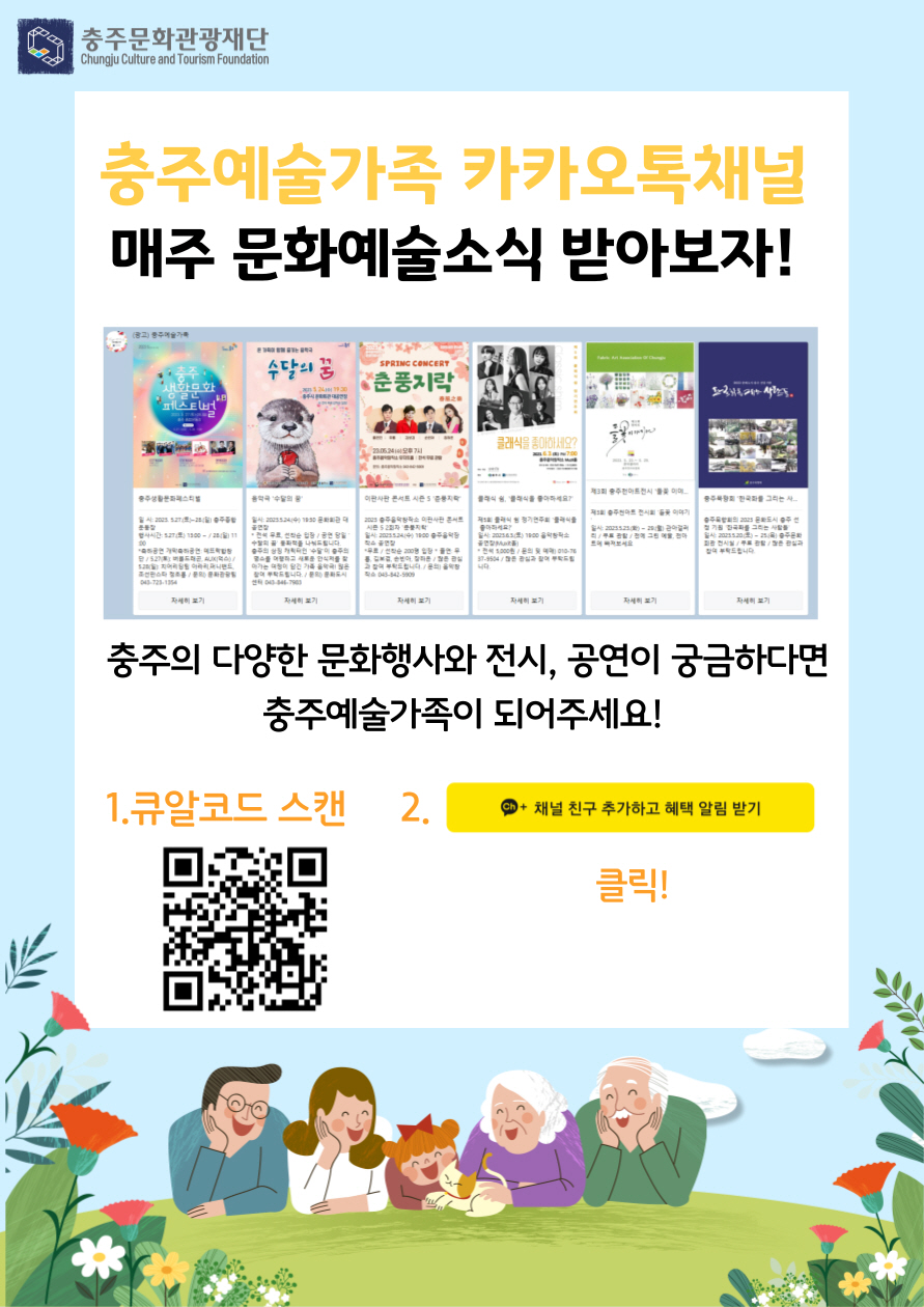 충주예술가족 채널 친구 추가하고 가장 빨리 받아보세요~^0^